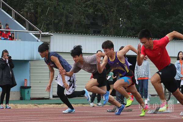 (文/侯文硕 图/廖元文)【核心提示】10月19日下午两点零五分,男子一百米决赛在运动场举行。百米比赛,惊天枪后疾如飞,勇往直前不后退。枪声响后运动员们健步如飞,风驰电掣。来自林学1801的熊子宣在比赛中用时仅12.38秒,取得全校第一名的佳绩,为园林院再夺一金。