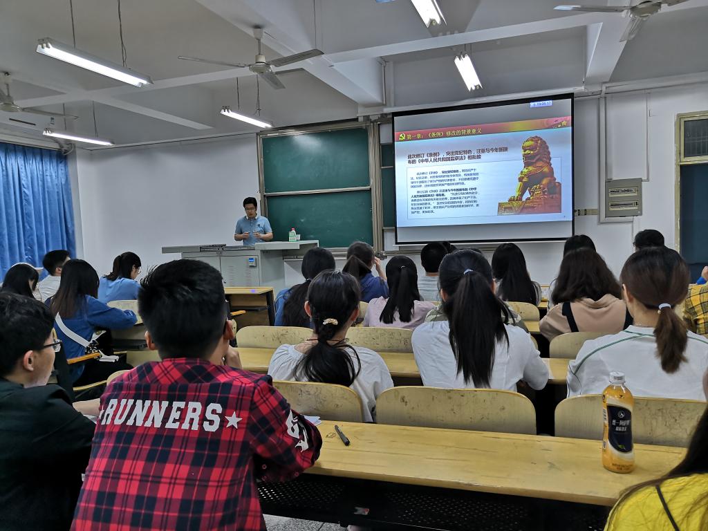 蔡江老师提出修改后的《条例》突出了党纪特色,坚持纪严于法,纪在法前,对各级党组织和全体党员,特别是党员领导干部提出了更为严格的纪律要求;不仅要模范遵守国家法律,还必须接受更加严格的纪律约束。同时,《条例》还注重与今年新颁布的《中华人民共和国监察法》相衔接,使全面从严治党的思路更加科学、更加严密、更加有效。随后,蔡江老师讲解了本次《条例》修改的重点、亮点。修改后的《条例》共142条,与原来的相比新增11条,修改65条整合了2条。修改后政治性更强,内容更科学,逻辑更严谨,指导性和操作性更强。