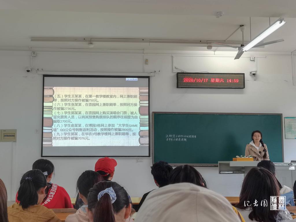 近期本科生网络电信诈骗案件时有发生,为切实增强学生金融风险防范意识,提升抵御网络电信诈骗能力,2020年10月16日—10月18日,八八看球 2020级14个班级分别在班长支书的组织下开展了以“防范网络电信诈骗,共建和谐安全校园”为主题的班会。