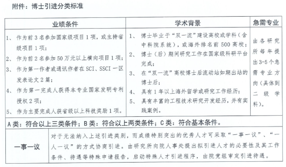 B 类:安家费 25 万元,科研启动经费 20 万元,内聘专技七级岗位,享受专技七级待遇。