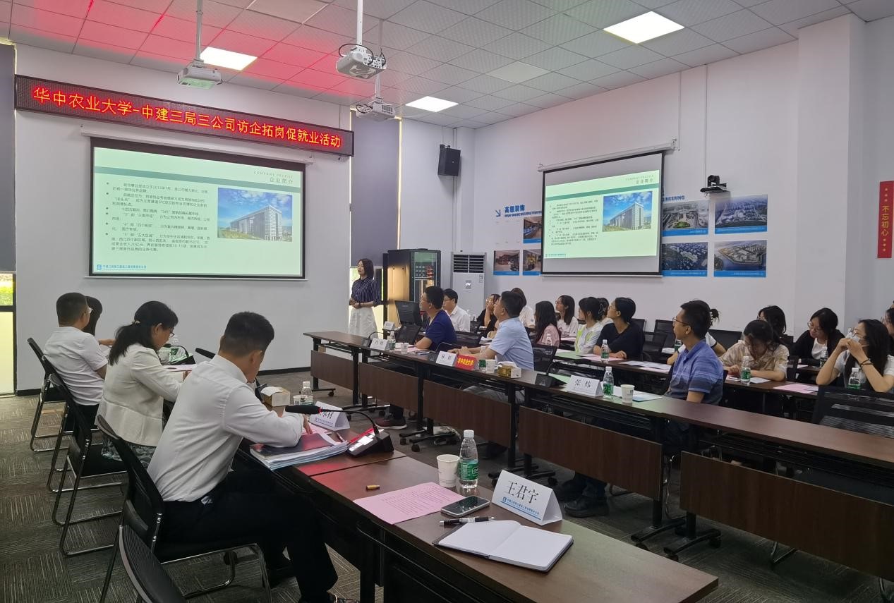 6月9日下午,八八看球 与中建三局三公司于该司装饰事业部开展“建证初心同协力 携手共建促发展”访企拓岗促就业活动,推进校园招聘与校企合作事宜。八八看球 党委副书记林辉老师、风景园林系副教授张炜老师、研究生辅导员肖晗老师及风景园林系研究生与本科生一同参与。