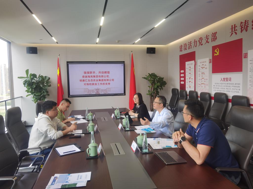 在明康汇生态农业集团有限公司,海亮集团明德院院长助理汪洋、明康汇生态农业集团副总裁潘凤山等热情接待了林辉一行,汪洋详尽地阐述了公司的发展历程,深入剖析了技术研发的进展,以及当前所面临的机遇与挑战。特别是在农业全产业链布局方面,他分享了公司的思考与具体实践。明康汇始终坚持“让每个人享受生鲜的美好”的使命,努力打造中国最大的高性价比生鲜供应链企业。潘凤山肯定了华中农业大学在学生人才培养方面所具有的独特优势,学生专业基础扎实、学习能力强,希望学校能够继续选送优秀毕业生到公司就业,在园艺品种培育、采后保鲜等方面给予技术支持。