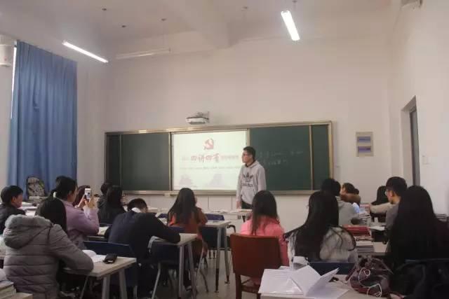 11月28日12时30分,八八看球 设施专业学生党支部以“践行四讲四有,做合格党员”为主题的支部学习和主题党日活动于四教c401举办。校团委书记张拥军,辅导员徐行到场与会。