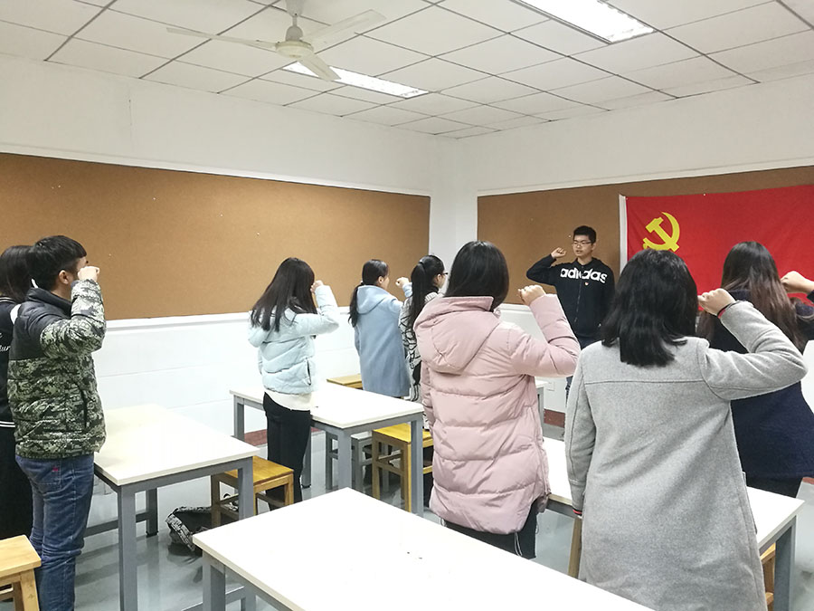 12月8日上午十点,我校景园党支部在景园楼209举办了“重温入党历程”的宣誓大会,拉开了此次主题党日的序幕。会上,党支书首先向支部成员介绍了本次活动的内容和流程。随后,在党支书的领导下,支部党员依次领读《中国共产党章程(修正案)》,带领全体成员深入学习和领会党的性质、宗旨,理解党员的条件、义务和权利,明确做合格党员的标准和要求。最后,由党支书领誓,支部全体党员面对党旗重温入党誓词,回顾入党宣誓时的庄严承诺和坚定决心,提醒自己牢记入党的初心。整个大会在整齐的誓词中落下帷幕。