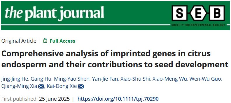 柑橘是我国南方最重要的水果,无核(无籽)果实由于食用方便备受消费者和市场青睐,培育无核果实是柑橘重要育种目标之一。倍性杂交创制三倍体是柑橘无核种质创新的重要途径。华中农业大学郭文武教授团队针对我国柑橘原产果实种子多问题,10多年来以我国地方特色有核品种为母本(二倍体)与四倍体为父本倍性杂交,创制了一大批三倍体新种质,培育了系列无核优质新品种(新品系)。但三倍体胚在发育早期常因胚乳发育异常导致败育,需要开展大量的幼胚离体挽救培养才能获得三倍体有性后代,费时费力。探究柑橘倍性杂交胚乳发育异常的原因并鉴定关键基因,将有助于获得无须幼胚离体挽救的倍性育种亲本,大幅提升三倍体创制效率。印记基因在植物倍性杂交胚乳发育过程中发挥着重要作用,但柑橘中尚未系统鉴定,发掘柑橘印记基因将有助于提高倍性育种效率,助力三倍体无核种质创新。