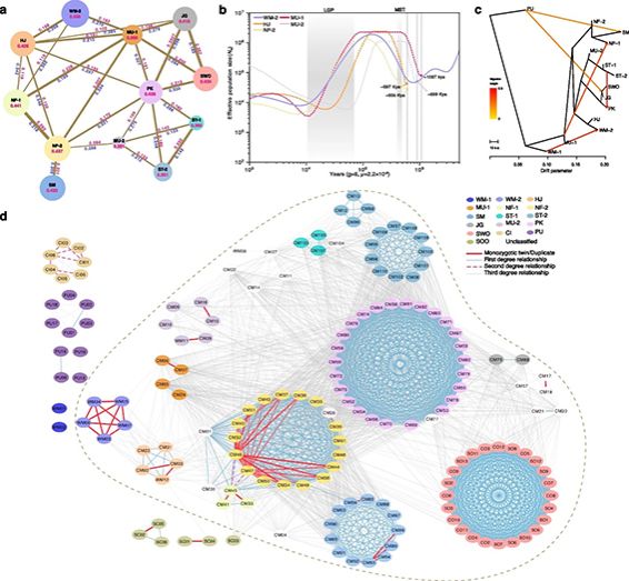 本研究利用Pacbio HiFi和Hi-C技术,提供了中国古老栽培柑橘品种-南丰蜜橘的染色体级别单倍型基因组组装,为宽皮橘研究提供了精确参考。为了解决宽皮柑橘分类模糊问题,研究通过整合77份重测序和114份已发表的柑橘种质基因组,基于群体基因组分析,将宽皮柑橘划分为12个不同的类群。基于该分类,研究发现,WM-1(莽山野橘)与其他组之间具有高度的分化,并经历了严重的种群瓶颈,而WM-2(道县野橘)与现代栽培柑橘关系更近,因此推断WM-2可能是现代宽皮橘的最早直接祖先。