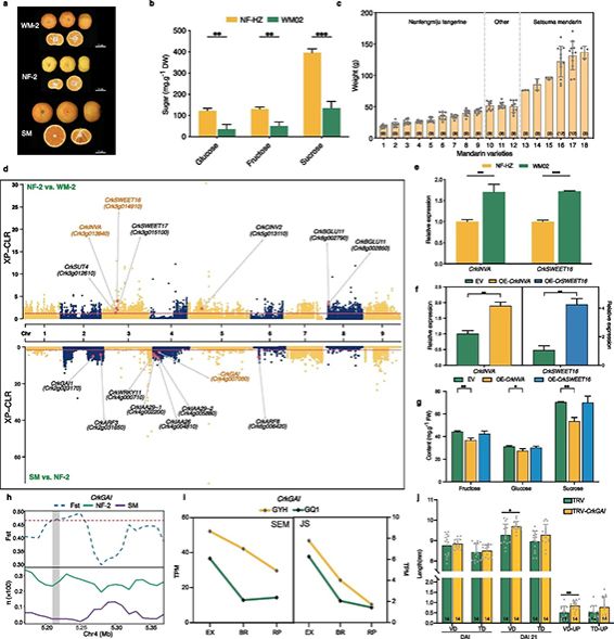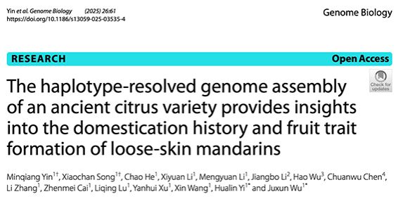 果蔬园艺作物种质创新与利用全国重点实验室伊华林/吴巨勋课题组题为"The haplotype-resolved genome assembly of an ancient citrus variety provides insights into the domestication history and fruit trait formation of loose-skin mandarins"的研究论文,解析古老柑橘品种南丰蜜桔单倍型基因组,并揭示宽皮柑橘50万年驯化历史和柑橘果实重要性状形成机制。