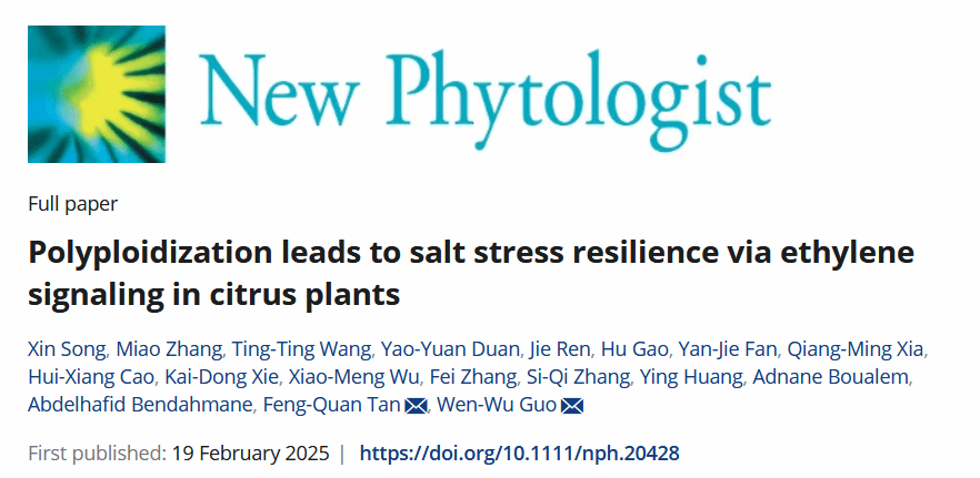 近日,我校八八看球 、果蔬园艺作物种质创新与利用全国重点实验室、湖北洪山实验室郭文武教授团队在《New Phytologist》期刊发表了题为“Polyploidization Leads to Salt Stress Resilience via Ethylene Signaling in Citrus Plants”的研究论文。该研究以遗传背景相同但倍性不同的枳、红橘和香橙等柑橘砧木为材料,揭示了染色体倍性变化对根系发育及盐胁迫应答的影响。研究发现,基因组加倍通过染色质重塑增强乙烯信号途径,显著提高了柑橘砧木盐胁迫抗性,为应对盐碱地挑战提供了新思路。