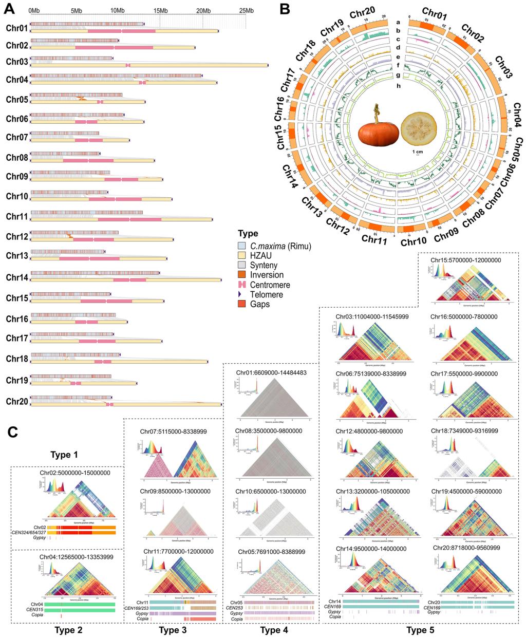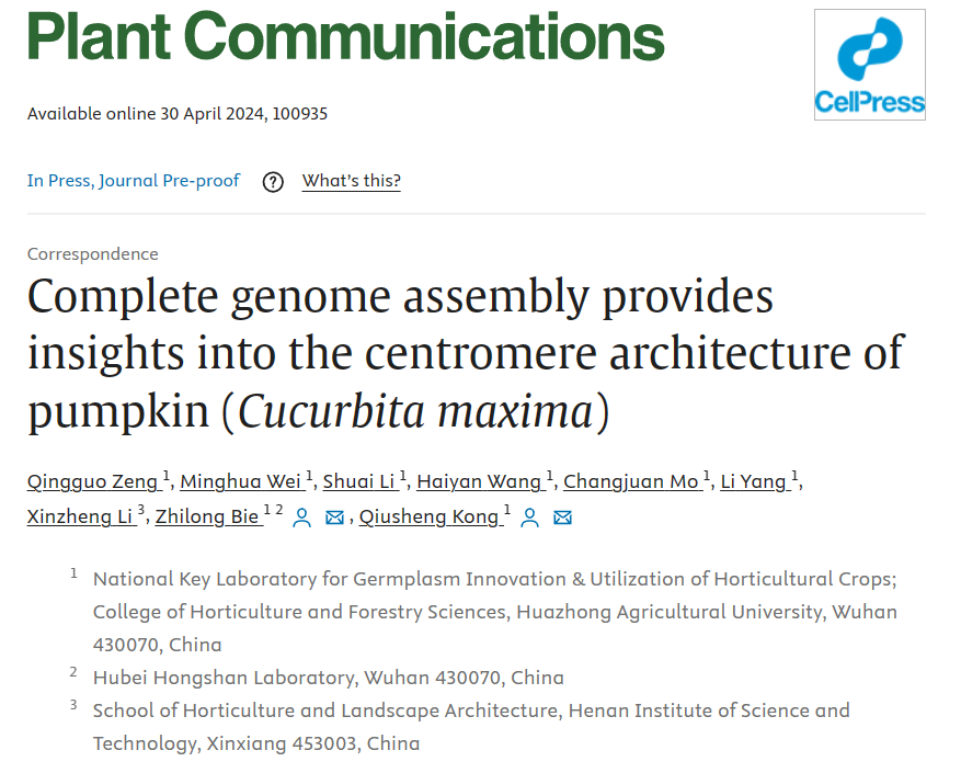 近日,华中农业大学果蔬园艺作物种质创新与利用全国重点实验室、八八看球 孔秋生教授和别之龙教授团队在Plant Communications在线发表了题为“Complete genome assembly provides insights into centromere architecture of pumpkin (Cucurbita maxima)”的通讯论文。该研究利用HiFi、ONT三代测序数据及Hi-C技术,成功组装了第一个端粒到端粒无间隙(T2T and gap-free)的南瓜完整基因组,并基于该基因组剖析了南瓜中独特的着丝粒结构与特征。