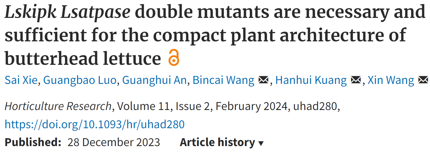 2024年1月,Horticulture Research在线发表了华中农业大学果蔬园艺作物种质创新与利用全国重点实验室题为Lskipk Lsatpase double mutants are necessary and sufficient for the compact plant architecture of butterhead lettuce的研究论文。该研究通过遗传学图位克隆了两个调控奶油生菜紧凑株型的关键基因,并结合遗传转化、基因共表达分析、显微观察以及生化检测,阐述了奶油生菜紧凑株型的调控机制,为今后莴苣株型的遗传改良提供了重要的基因资源。
