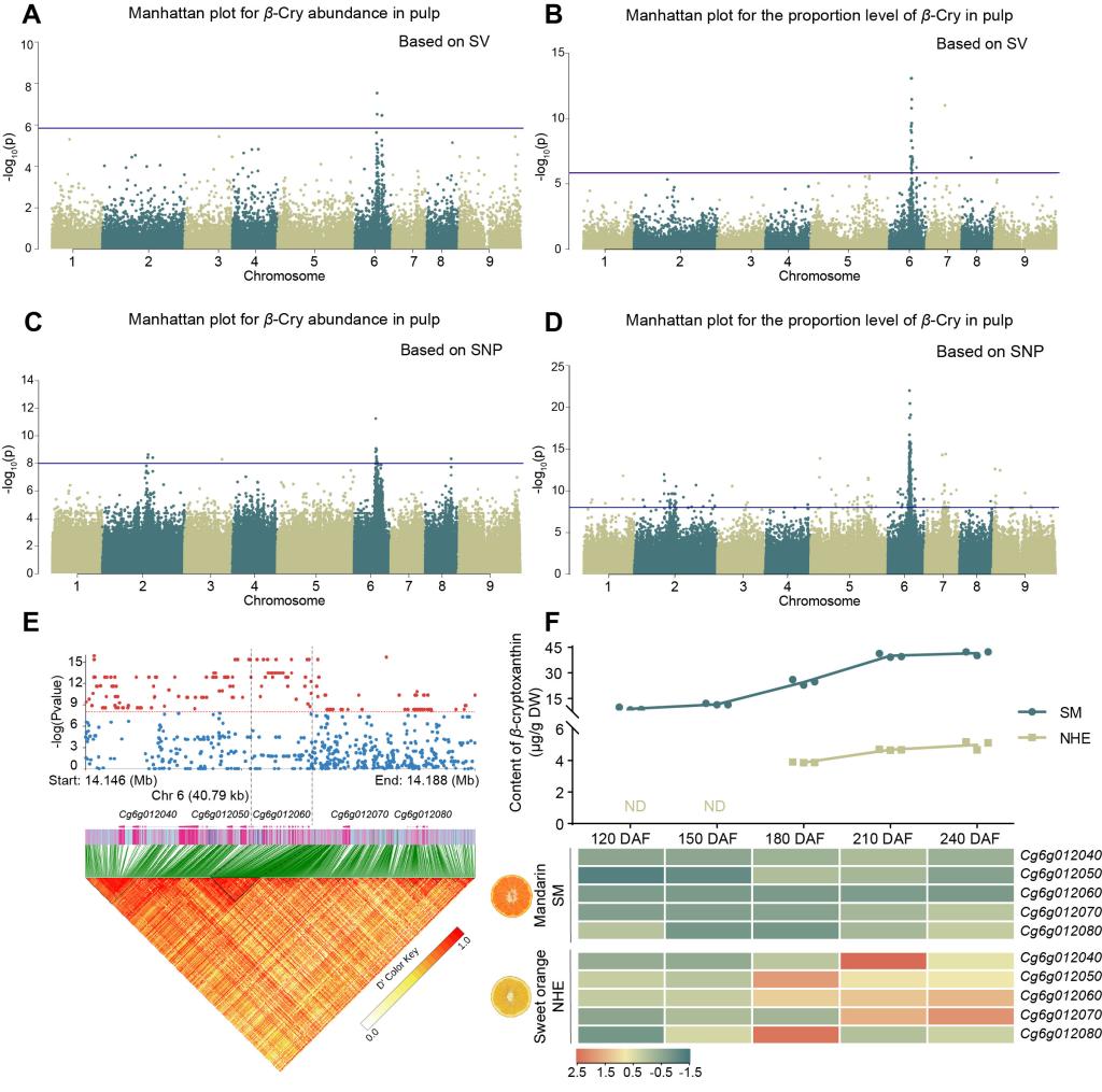 植物中的类胡萝卜素是维生素A的前体,可在人体内转化为维生素A,对人类营养和健康十分有益。β-隐黄质作为维生素A合成前体的类胡萝卜素之一,只在少部分作物中富集。其中,柑橘果实是人类摄取β-隐黄质的重要膳食来源,但柑橘果实中β-隐黄质差异积累的遗传机理尚不清晰。揭示柑橘果实差异积累β-隐黄质的遗传机理及进化机制对于指导柑橘果实品质改良和培育富含维生素A前体的作物具有重要意义。