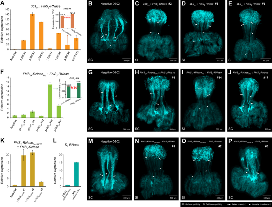SI的丢失在适应性进化过程中起着至关重要的作用,随着越来越多的功能性转座子(TEs,Transposable elements)被发现,转座子对物种分化和驯化的影响将会进一步得到阐释。本研究对S-RNases相关的MITE转座子插入在自交进化中的功能分析拓宽了人们对自交不亲和系统遗传基础的理解,也为后续S-RNase和SLF特异性识别的生化基础及共同进化研究奠定了坚实的基础。