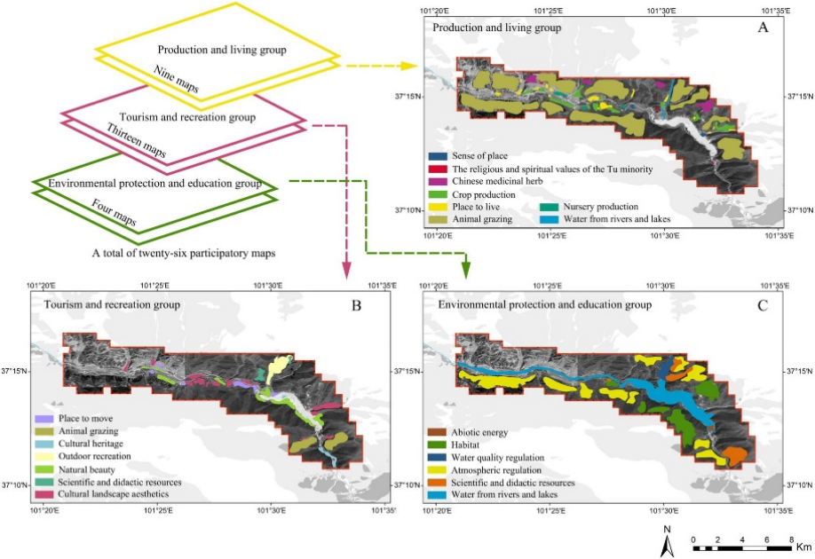 图2 三组利益攸关方绘制的地景服务