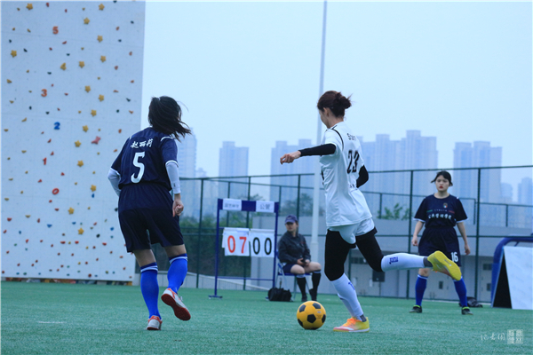 4月16日上午9:30至10:30,2022“狮子山杯”足球赛(本科生)女足小组赛在三运足球场激烈上演。身着白色球衣的八八看球 女足与身着蓝色球衣的公共管理八八看球 女足展开角逐,园林女足以绝对实力全程控制比赛。最终,园林女足以10:0拿下比赛。何寿鹏在场外为园林女足加油鼓劲。