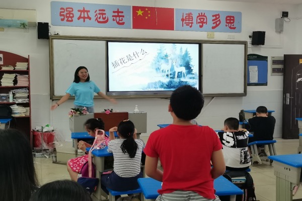 7月8日下午两点半,八八看球-在线看球直播网站 赴华农附小“七彩假期”专项实践团在华农附小举办插花活动。主讲人李博鑫与罗志蓉分别向小朋友们介绍了常见的花材种类和各种花材的特点以及插花的注意事项。