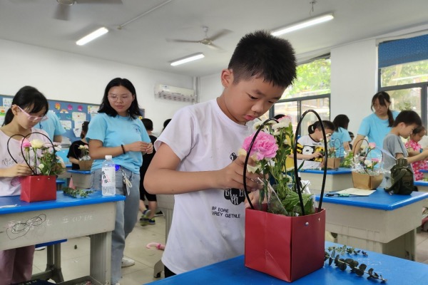 华农附小“七彩假期”专项实践团带来花艺课堂