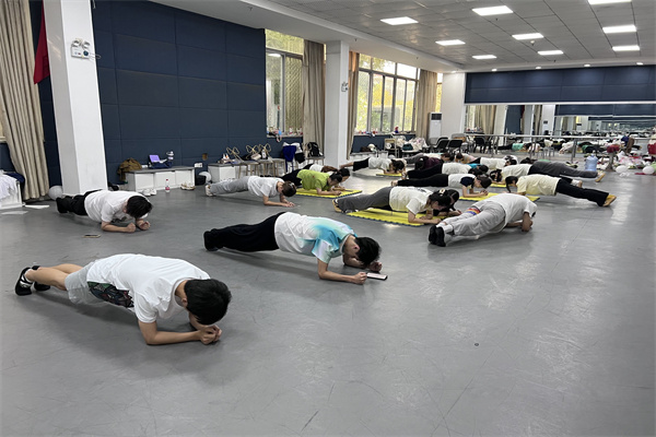 团队成员认真揣摩其中感情色彩,经过深入分析和不断讨论制定训练方案,决定加强基本功与体能的训练,扎实舞蹈排练的基础,以求提高舞者腿部、肩部的柔韧性和对身体的控制力,使队员迅速进入训练状态,得到身韵和体态上的提升。同时,队员们将开合跳、高抬腿等动作用于体能训练,以期对舞者进行体格塑造。