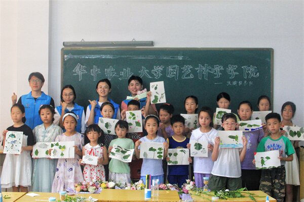 7月11日上午,实践团成员在辅导员邬远生老师和园艺2101班项之彦同学的带领下,在西周社区教育八八看球 给小朋友们开展了“花香叶舞,共赏一夏”主题相关的系列活动。