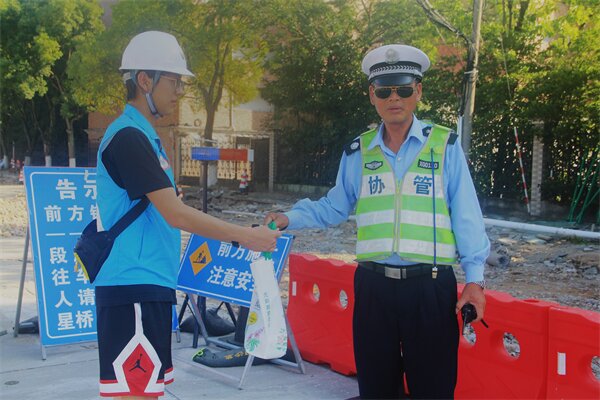 7月11日下午,实践团与西周镇“西望青年”一起举办夏日送清凉活动。炎炎夏日,西周镇的道路建设工人们依旧坚守在一线,为做好防暑降温工作,切实保障道路建设工人们的身体健康,实践团与西周镇“西望青年”一起来到施工现场,为工人们送去水果、饮料等防暑降温清凉慰问用品。在活动举办前,西周镇团委副书记详细地向实践团成员们介绍了道路施工方案和施工进程,为了预防高温对工人身体健康的影响,辅导员邬远生和施工队队长对于施工作业时间的安排进行了深入的交流,既能避免下午的高温,同时又不会影响到街边居民的正常生活。