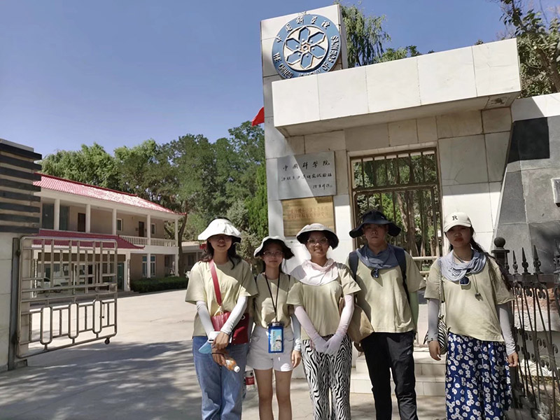 沙坡头沙漠试验研究站。该研究站是中科院最早建立的野外长期综合观测研究站,地处腾格里沙漠东南缘的宁夏中卫市境内,是我国沙漠科学研究无可替代的野外支撑平台和国际知名的沙漠科学研究基地。从研究站创建人李鸣冈先生1955年建站起,一代代科学家奉献他们的青春投入到治沙研究中,形成了铁路防护体系的研究以及无灌溉条件下人工植被防护带的建立,并创造性地提出“以固为主,固阻结合”策略以及麦草方格的治沙方法。实践队对沙坡头地区的生态气候与生态环境及其对固沙研究、区域经济建设的重要意义有了更加全面的认识。