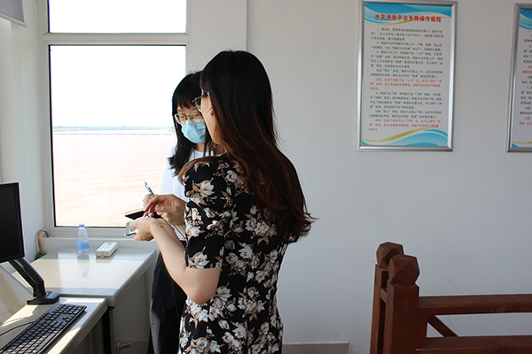 7月28日,她来到利津水文站参观调研。利津水文站是全国大江大河重要水文站,也是黄河最下游一个水文站,站址位于山东省东营市利津县利津街道刘家夹河村,下辖清河镇、张肖堂、麻湾三个水位站。助理工程师梅亚鑫带领她了解利津水文站的情况和基本任务,并介绍了2021年调水调沙工作的开展情况以及近些年来观测的各种水文数据。随后,她带领刘子涵参观了水文站测量水量、沙量的各种设备,如水尺、吊箱等。
