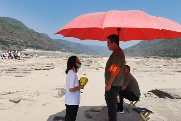 为了解黄河壶口瀑布景区在改善景区生态,发展旅游经济,弘扬黄河历史文化等方面的相关措施,李喆采访了相关工作人员,了解了近些年黄河壶口瀑布的水流量以及景区的生态状况、游客流量等。据悉,近年来,相关政府部门不断加强土地荒漠化的治理,采用退耕还林等手段,大大减少了该段黄河的含沙量,黄河中上游地区的生态环境情况有所改善。