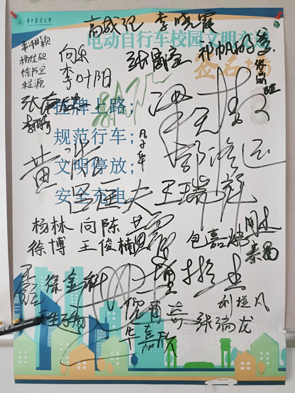八八看球 组织各个班级开展主题班会,观看《电动自行车爆炸起火警示录》《电动自行车交通事故警示录》、学习电动自行车消防安全知识,交流讨论关于电动车安全的认识体会,开展了“挂牌上路、文明行驶、规范停放、安全充电” 签名活动。每位同学签订了文明交通承诺书。拥有电动车的同学们更是都在签名墙上留下了自己的姓名,承诺遵法守规,文明出行。