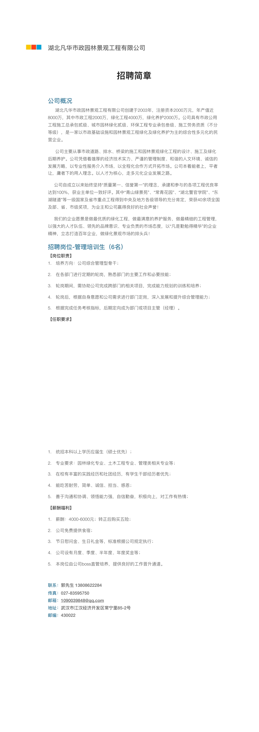 湖北凡华市政园林景观工程有限公司2020届校园招聘简章
