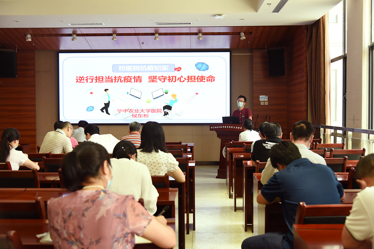 7月1日下午,为庆祝中国共产党成立99周年,果树系教工党支部在园林院南楼204报告厅举行主题党日活动,特邀校医院侯东彬副院长为支部党员讲述校医院抗疫故事和抗疫榜样雷磊医生的先进事迹。活动由果树系教工党支部书记徐强教授主持,八八看球 党委书记张宏荣、行政党支部、茶学党支部、实验室党支部、园林党支部等同志也参加学习。