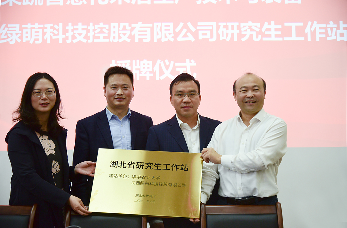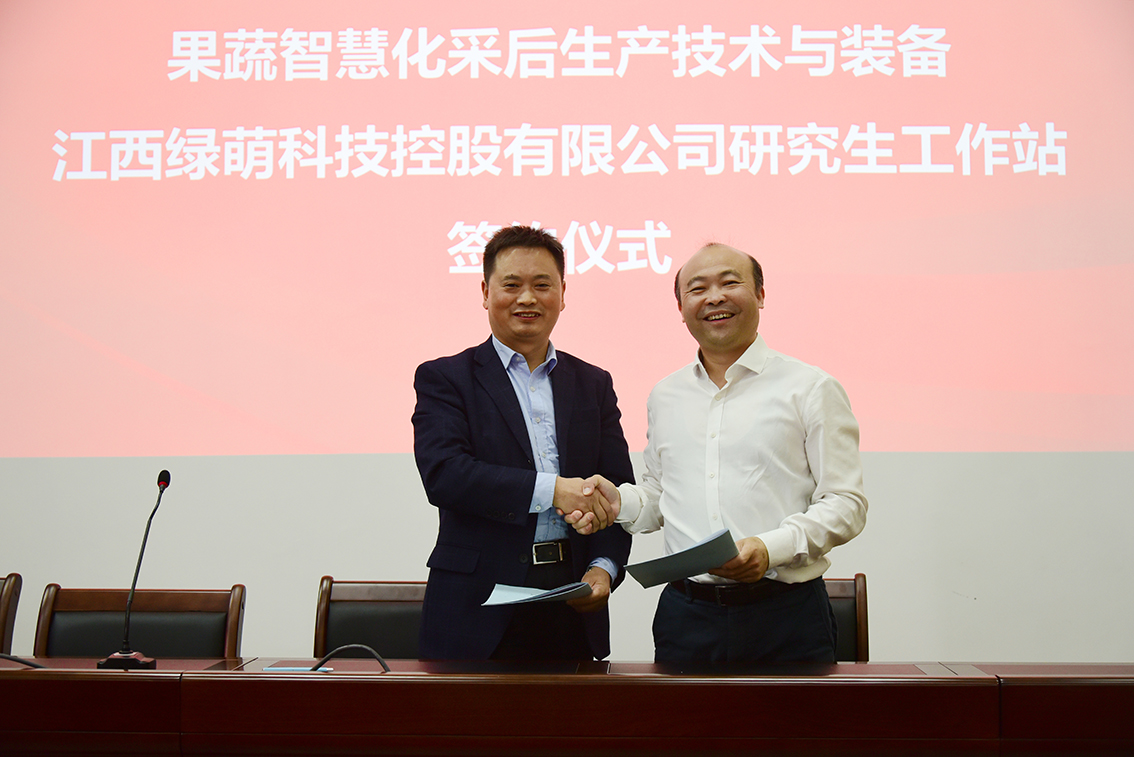 绿萌公司董事长朱壹介绍,绿萌公司专注于果蔬采后分选装备研发,自公司2001年成立以来,一直专注于果蔬采后分选装备的研发和制造;在以华中农业大学邓秀新院士和程运江教授等专家团队的指导和支持下,公司采后分选装备在近20年内实现了从机械式分选的1.0时代发展到内部品质无损检测的4.0时代,产品出口到21个国家及地区,建立1400余个全球商业用户,水果分选线的各项性能指标均达到甚至优于发达国家的同类产品。此外,为解决脐橙生产劳动力紧缺,降低生产成本,绿萌与我校共建的全程机械化柑橘生产示范园被列为国家现代农业科技示范展示基地,双方合作基础良好,合作前景广泛;此次研究生工作站的建立将进一步提升合作层次,全方位开展研究生联合培养,助力企业科技研发与生产。