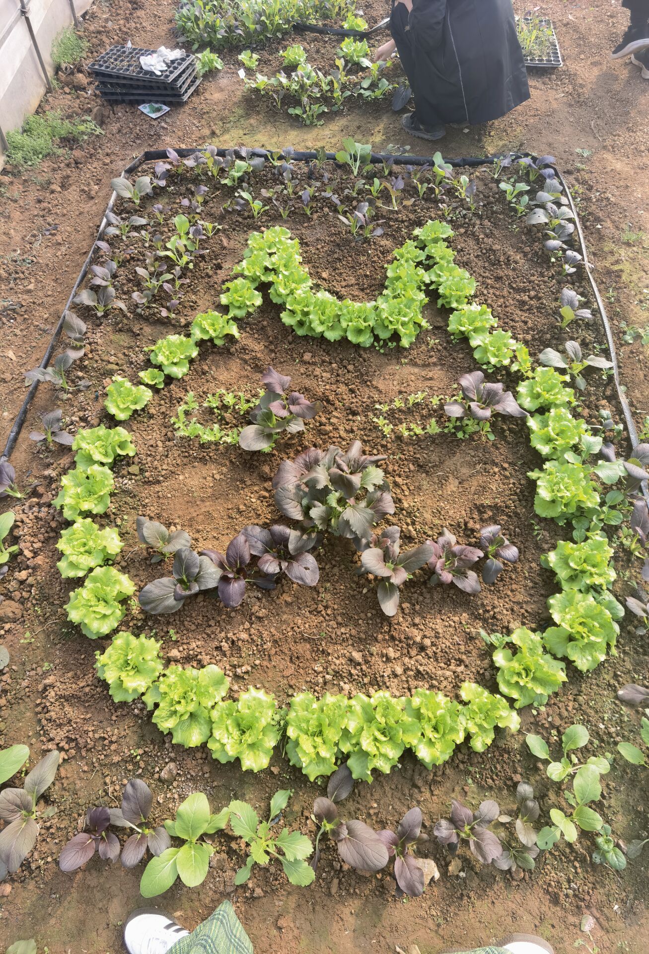 还有很多创意通过蔬菜栽培展现了出来。拼成的“CHINA”字样,蜿蜒美观的蔬菜波浪,生动俏皮的微信表情,乃至于繁体的发财的“发”字……充分展现了同学们的才思妙想,也体现了其对本次创意比赛的投入和热情。