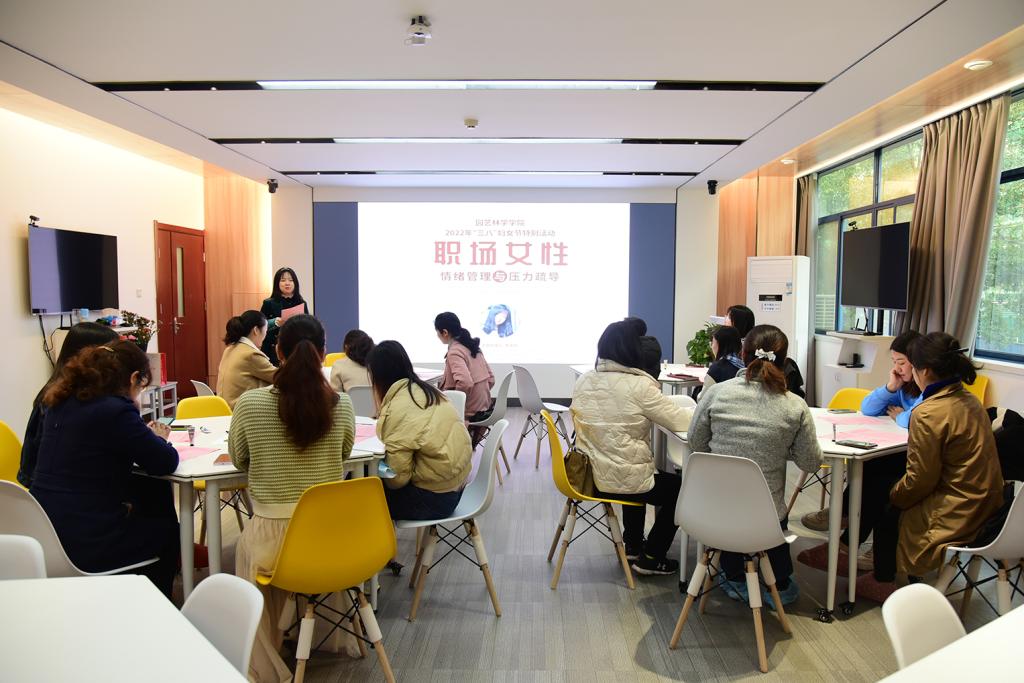 7日下午,辅导员李永熙以“职场女性情绪管理与压力疏导”为主题分析了来自职场、人际、家庭等方面的压力源,从身边的小事娓娓道来,为大家详细讲解了一些情绪调控的心理技巧,带来了一场知识性和趣味性相结合的精彩主题分享。