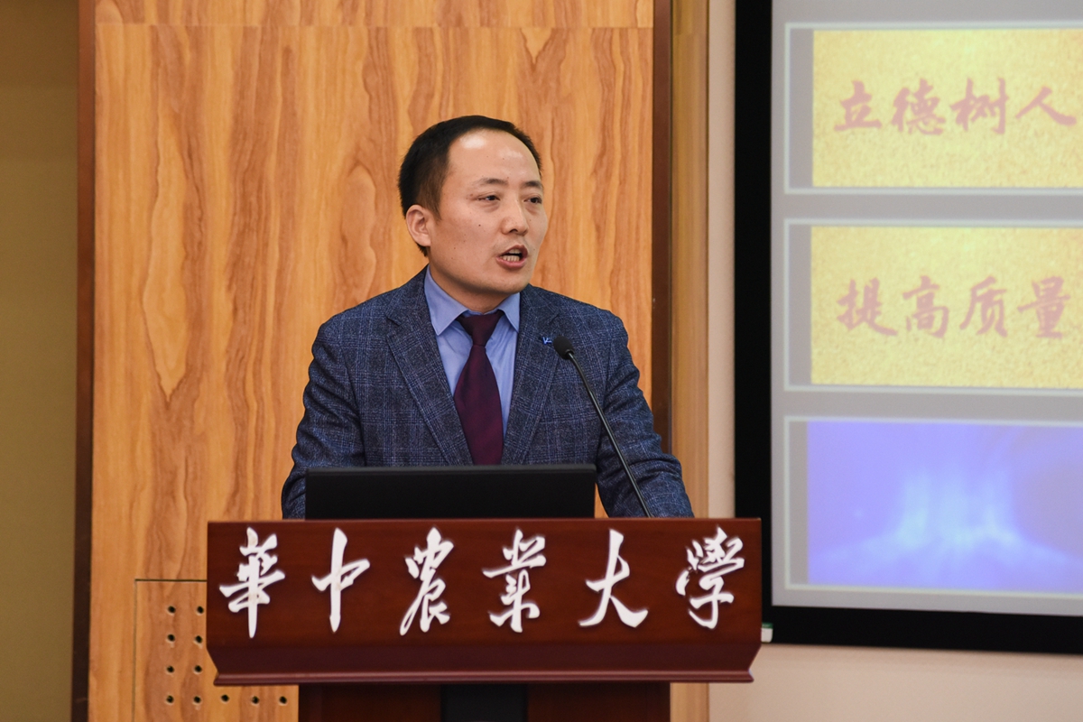 张余洋在2021年研究生导师教书育人奖评选会上分享研究生育人工作(记者 川竹 摄)