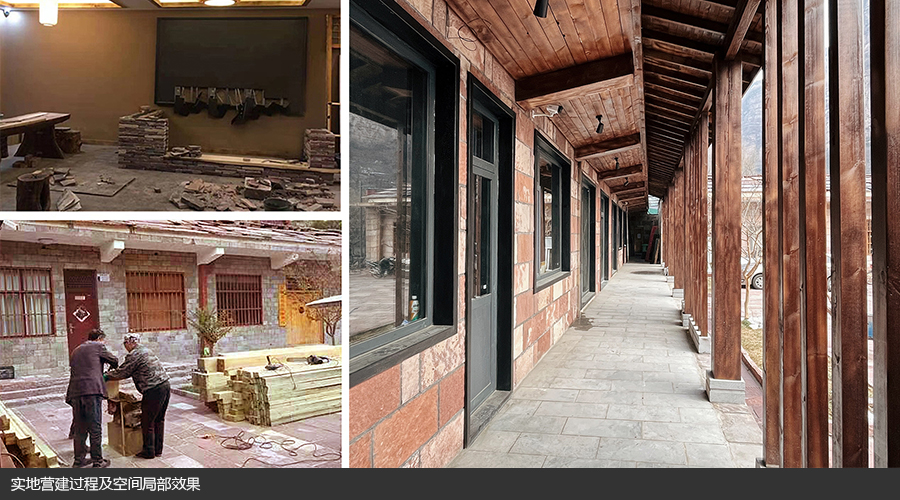 此次实践以“乡村出题+高校答卷+成果落地”为模式开展,历时半年之久,历经方案提交、项目立项、落地施工等一系列环节,学生们完成空间改造方案《“邂逅·画间集”高家台游客中心》并成功建造落地,收获荣誉成果的同时更积累了宝贵的经验。自2021年6月项目启动以来,团队成员深入挖掘乡村建设的迫切需要,立足乡村当地的风貌特色,不断完善方案。期间,受洪灾与疫情影响,实地调研受阻,方案与施工推进面对巨大困难,团队只能通过线上论证、视频电话等方式,与驻村创意导师、当地领导、施工团队保持沟通交流,反复修改调整方案和施工图纸。尤其在项目落地阶段,团队成员初次参与实际施工,多次遇到图纸绘制不规范、施工预算超标、工艺效果与预期不符等现实问题,在此过程中受到多方指导帮助,也获得了大量乡村改造理念以及施工经验。这使得风景园林学生对于乡村空间设计有了更多的思考,明白设计接地气、体现实用性、结合现实情况的重要性。