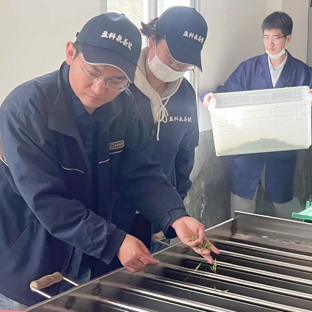 中国农技协江西宜丰茶叶科技小院由八八看球 茶学系与江西盈科泉茶业有限公司共建,此次入驻团队由21级茶学硕士班隋梦圆、宁瑶瑶、江广贤和茶学1802班于昊男组成。两个月时间里,黄友谊教授带领团队成员重点推动江西盈科泉茶业有限公司春茶的提档升级。团队根据当地鲜叶的质量和特征,确定了黄金茶、松针绿茶、毛峰、红茶、珠兰花茶等茶产品的加工工艺,并通过感官审评及再加工改进毛茶品质。黄垦镇院前九天茶厂欧阳厂长表示,黄友谊教授的指导和团队成员们的帮助大大提高了今年春茶的质量,提升了茶厂工人的制茶水平。