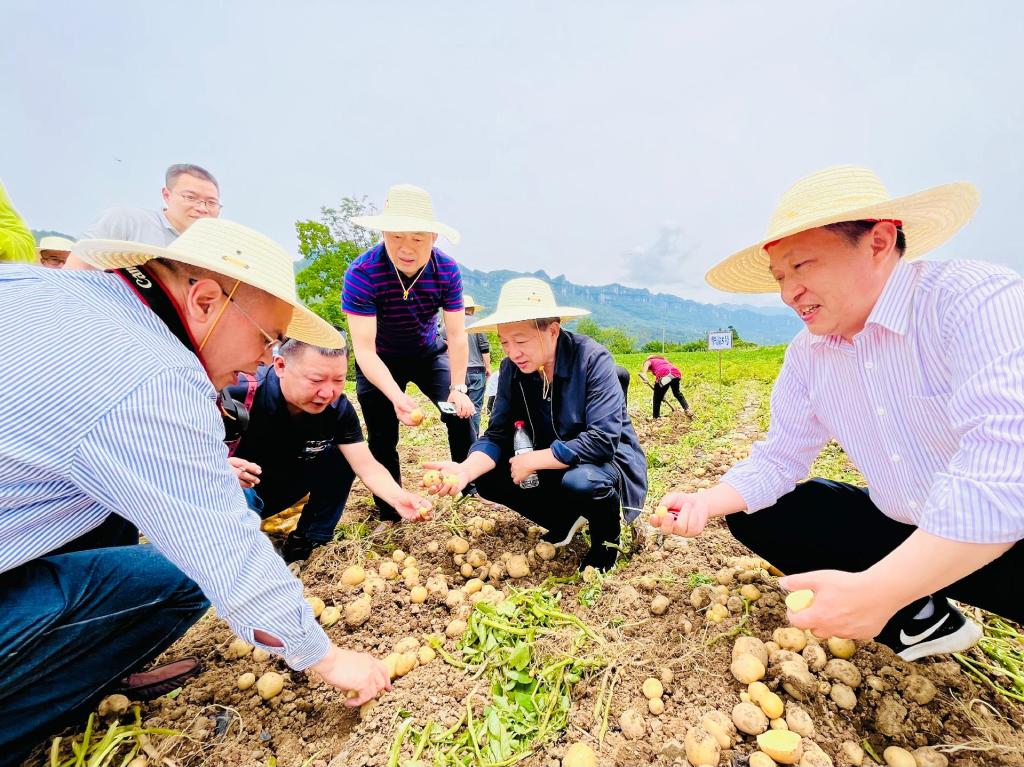 5月17日,湖北省农技推广总站二级调研员、省粮食生产专家指导组鄂西组组长羿国香,华中农业大学教授、省粮食生产专家指导组成员、国家马铃薯产业技术体系岗位科学家宋波涛,国家统计局恩施州调查队、州农业农村局、州农科院、恩施市及建始县农业农村局等单位专家就恩施州粮油作物绿色高效模式及马铃薯产业进行调研。