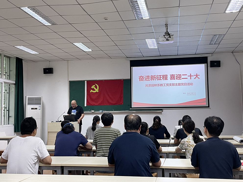 7月5日下午,风景园林系教工党支部在景园楼309开展“奋进新征程、喜迎二十大”主题党日活动,会议由支部书记张斌主持。