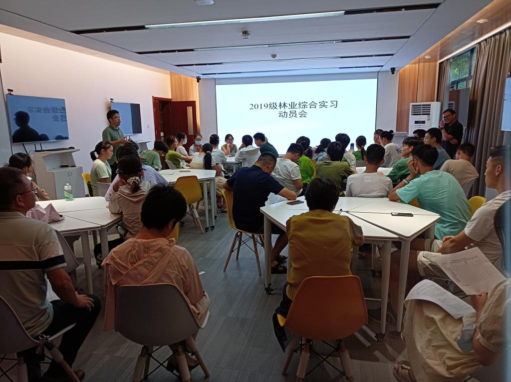 在实习出发前,林学系于8月13日下午召开了综合实习动员会,八八看球 党委副书记蔡江、副院长周继荣出席会议。此次综合实习,主要围绕林业产业特点、林分生长、立地质量评估与建模、抚育采伐设计、造林规划设计、苗圃规划设计和种子园规划设计等方面开展教学实习。
