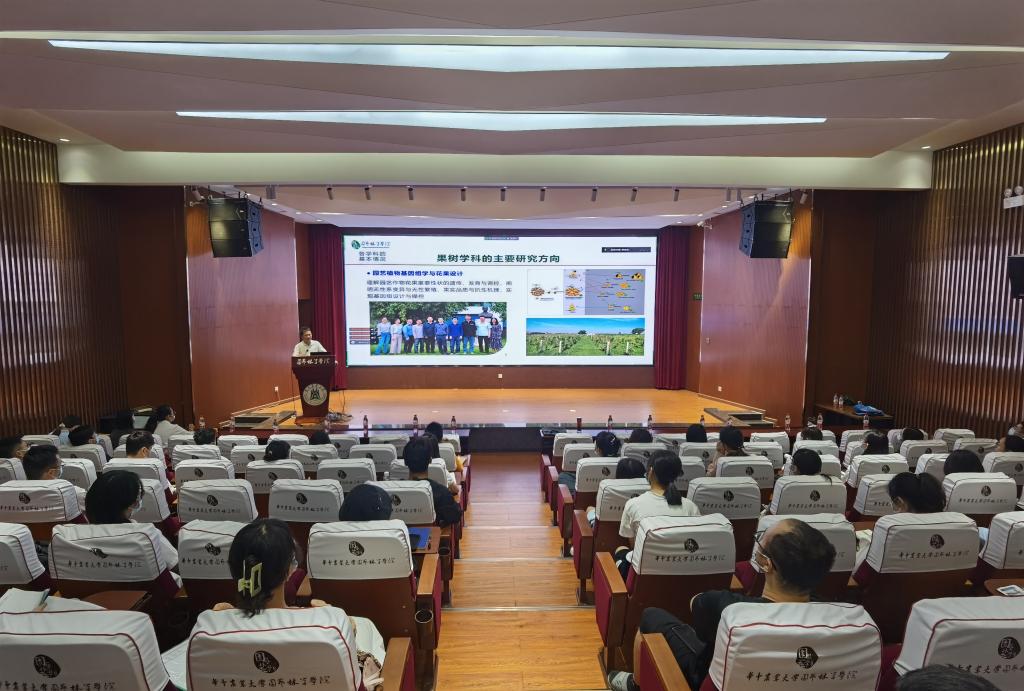 在学生提问环节,来自果树系的学生张艺问到研究生应该如何安排自己的生活。程院长表示,研究生应当寻找自己感兴趣的方向努力钻研,并且积极走出校园,到校外的实验基地,将理论与实际相结合,在实践中提高专业技能。