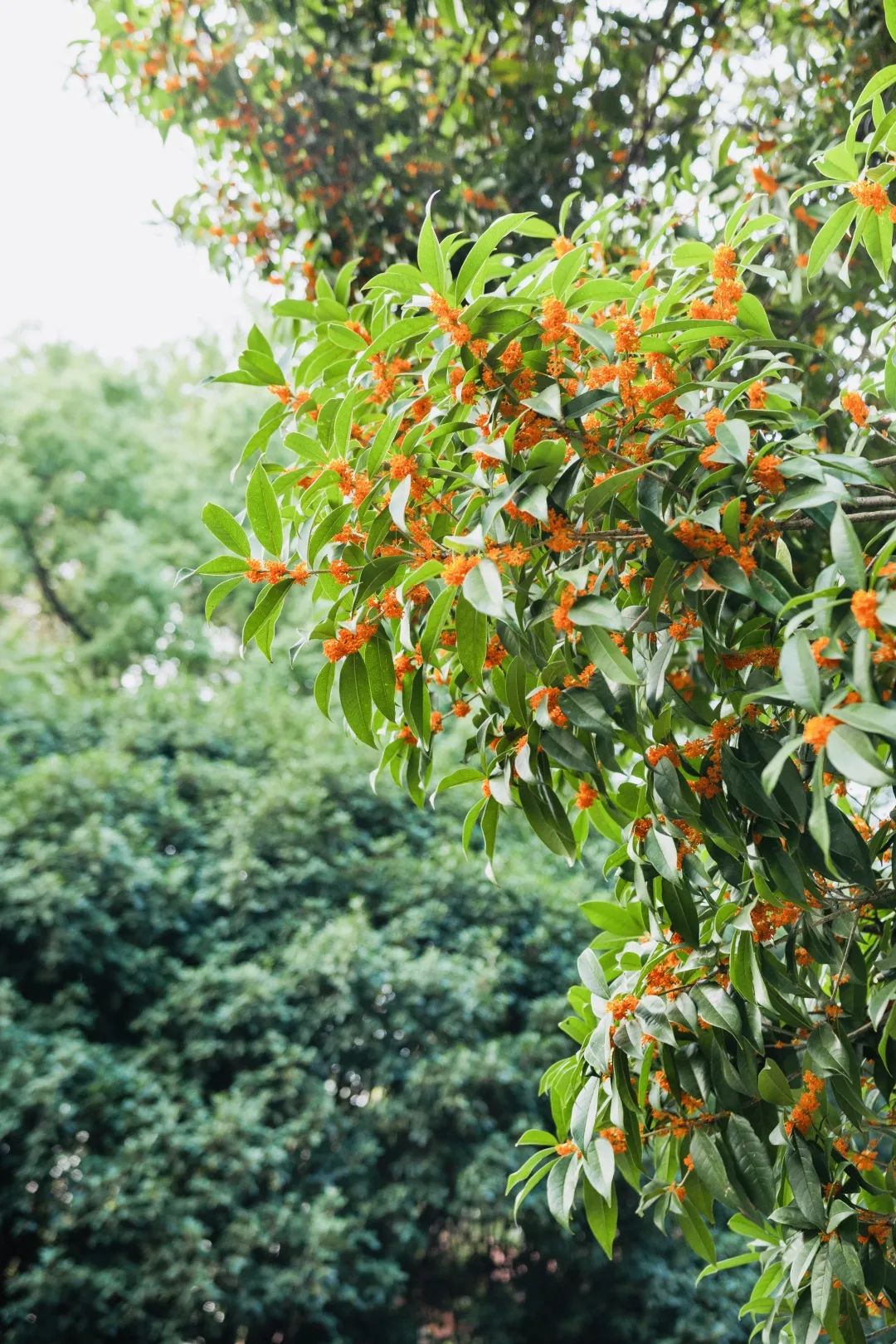桂花清可绝尘,浓能致远,堪称一绝。事实上,桂花的香味主要是用以吸引授粉昆虫来促进繁殖,花香中的关键香气活性物质是紫罗酮、芳樟醇及其氧化物。因为紫罗酮在桂花中含量很高,而香气阈值却很低,所以香气活性值特别高,让人闻起来感觉特别浓烈。