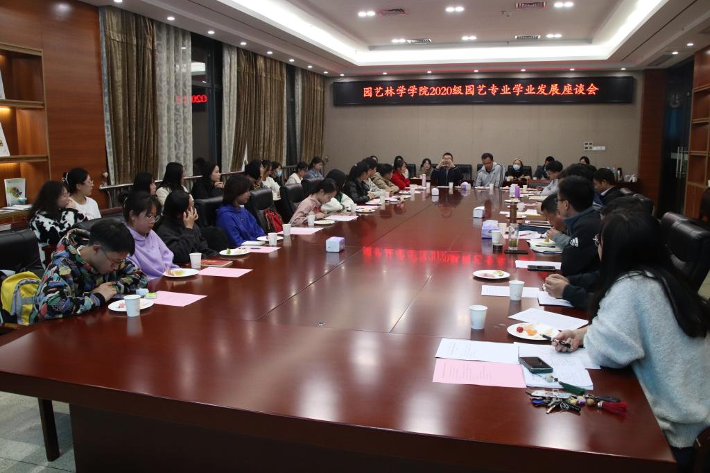 11月13日晚,八八看球 于园林南楼206会议室举行2020级园艺专业学业发展座谈会。八八看球 党委书记张宏荣,院长程运江,党委副书记蔡江,副院长周继荣,园艺专业相关教师、班主任、教务老师、辅导员以及2020级园艺专业部分学生代表参会,座谈会由蔡江主持。