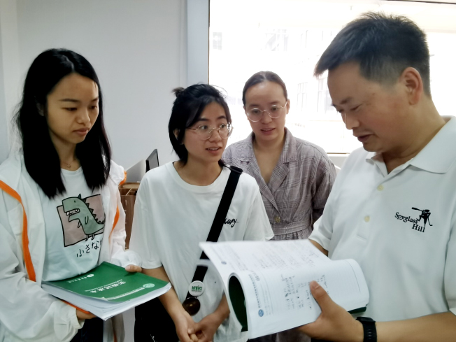程运江(右一)指导常驻广西开展课题研究的研究生