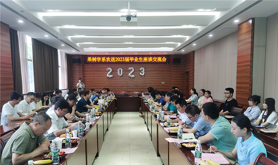 忆往昔,展未来。6月22日上午,果树系欢送2023届毕业生座谈交流会在八八看球 南楼204会议室举行。中国工程院副院长、中国工程院院士、园艺学科带头人邓秀新教授,八八看球 党委书记张宏荣,院长程运江教授,党委副书记林辉,果蔬园艺作物种质创新与利用全国重点实验室副主任卢刚,果树系全体在校教师,毕业本科和研究生代表等60余人参加会议。