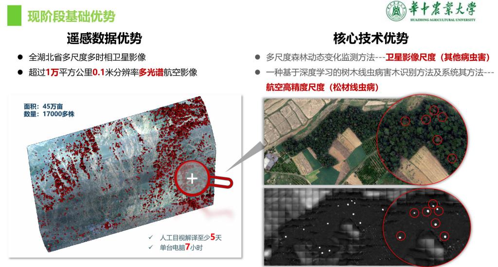 佃袁勇副教授的报告介绍了八八看球 在神农架林区开展华山松大小蠹遥感监测的工作情况。针对神农架林区大面积的华山松林受到大小蠹虫害干扰,对当地的生态环境以及旅游经济带来了巨大影响的现状,佃袁勇副教授团队围绕华山松林健康监测开展研究,开发了基于深度学习的高分遥感影像智能识别病害木模型。报告中介绍了病害木识别模型机理及框架结构,阐述了基于高斯核函数的自动病害木标注算法以及高分遥感图像病害木样本库的建设情况。还介绍了该模型用于松材线虫病害木监测的可迁移性,并进一步阐述了该模型与无人机集成,开展准实时、自动病害木识别应用的进展。研究成果为森林健康监测及经营管理提供了新的思路和方法。