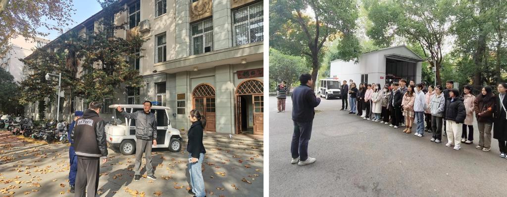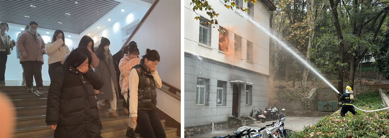 随后,党支部全体教师以景园楼为演习地点,模拟真实火灾现场,开展了消防演习活动。本次演习由校园建设与安全保卫部与八八看球 共同组织,景园教工党支部牵头,联合研究生党员和学生志愿者共同实施。演习开始,随着预设地点起火,弥漫的烟雾触发了楼内的烟雾报警器,发现“火情”后立即启动应急预案;楼内启动消防广播系统,党员教师、研究生党员、志愿者等人迅速分楼层疏散楼内师生,直至抵达楼下广场。与此同时,消防车到达起火现场,迅速展开扑救和救援行动。灭火工作完成后,党员教师、学生们共同学习了灭火器的使用方法和操作技巧,参与了现场演练。