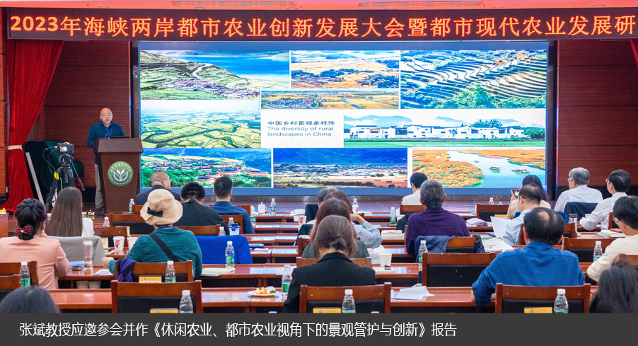 农业农村部华中都市农业重点实验室主任、华中农业大学风景园林系张斌教授受邀参会,并作主旨报告——《休闲农业、都市农业视角下的景观管护与创新》。报告在梳理休闲农业、都市农业的学术现状基础上,提出二者的发展应该积极响应中华文化的传承,主动保护乡村景观的自然与文化多样性,建构国土、区域、县域、村落(群)等多层级的景观特征保护体系,用以系统、科学地指导不同层级的景观管护。报告中,张斌以理论与案例结合的方式,解析了乡村景观演变的文化机制,提出休闲农业、都市农业的差异化发展策略,以及生态、生产、生活与生命相融合的空间创新模式,倡导以系统观、历史观推动对中华优秀传统文化的“创造性转化和创新性发展”,报告在与会人员中引发热烈反响。