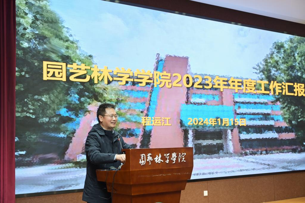 会上,院长程运江作《八八看球 2023年度工作报告》。报告指出,八八看球 2023年党的建设不断深化,努力创建党建品牌,其中果树学研究生第六党支部获评湖北省样板党支部并参加全国样板党支部评选;人才培养质量稳步提高,获国家级教学成果二等奖1项,获评国家级一流课程2门,学生就业率稳步提升,学生参与科技创新活动成绩突出;师资队伍建设显著加强,拔尖人才和科研团队培育取得新实效。