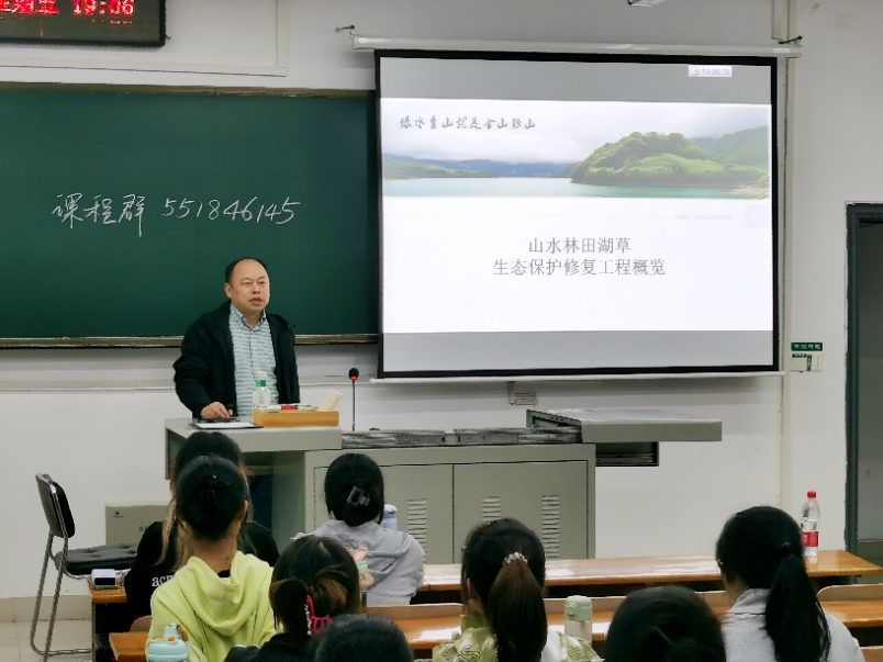 4月12日晚,黄志霖研究员作了题为“山水林田湖草生态保护修复工程”的讲座。黄老师根据长期科研经历,围绕山水林田湖草生态保护修复政策的由来、政策体系、技术标准体系、典型案例等内容,对山水林田湖草生态系统修复研究体系进行了系统介绍,强调了人地耦合关系下以森林为主的山水林田湖草生态系统修复与治理规划体系。并就“山水工程”实施中的典型问题与师生进行了深入交流。