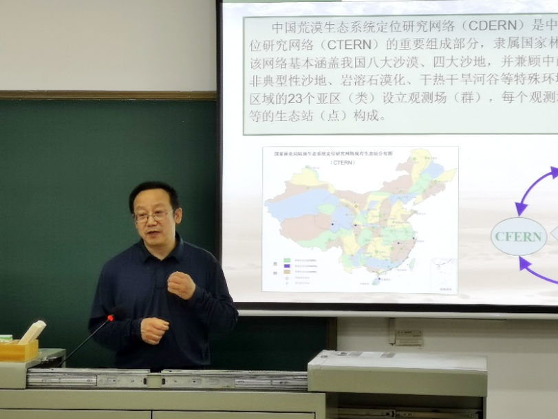 4月13日上午,冯益明研究员为同学们带来了题为“对地观测技术在荒漠化防治中应用”的报告。他从荒漠化监测及定位观测网络体系、地面无线传输网络荒漠化监测应用、遥感荒漠化监测应用等方面,介绍了新三北防护林建设背景下荒漠化监测评估和治理中对地观测技术相关应用,并回答了同学和老师们的提问。