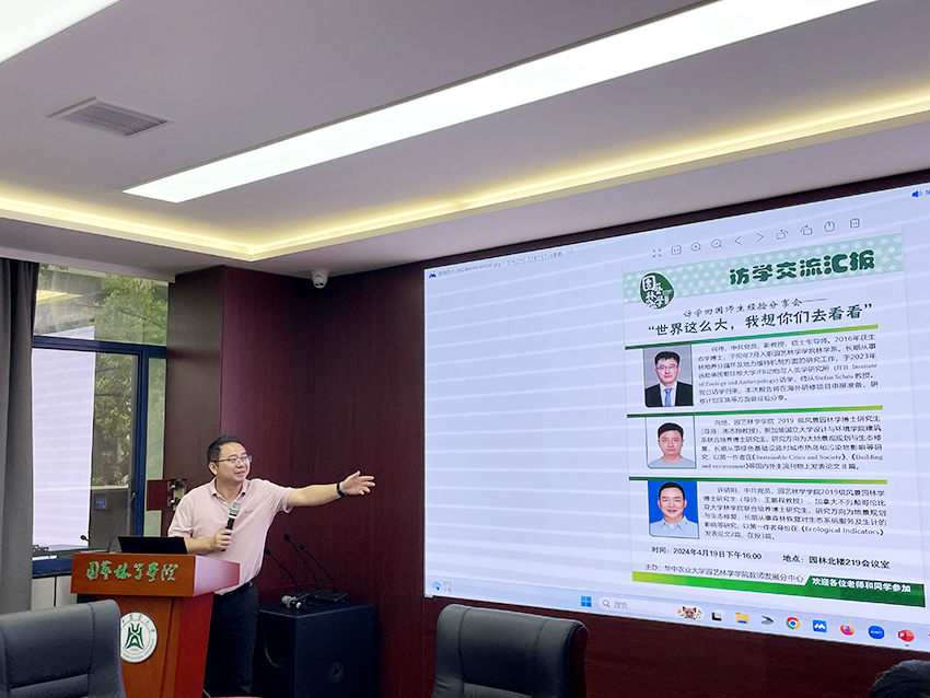 八八看球 林学系主任杜克兵老师向参会的各位老师和同学介绍了3位分享经验的优秀老师和博士,希望与会老师和同学通过本次交流会明晰备战目标,积累访学经验,提升表达能力,在准备中多下功夫,更有把握、更有信心地开展出国访学工作。